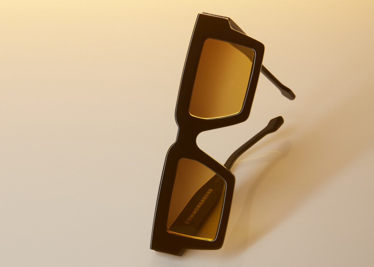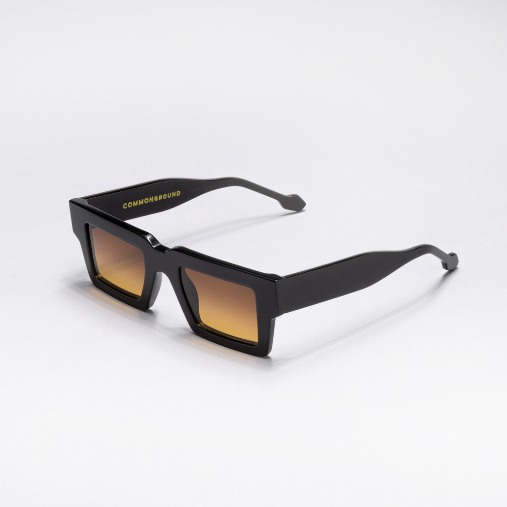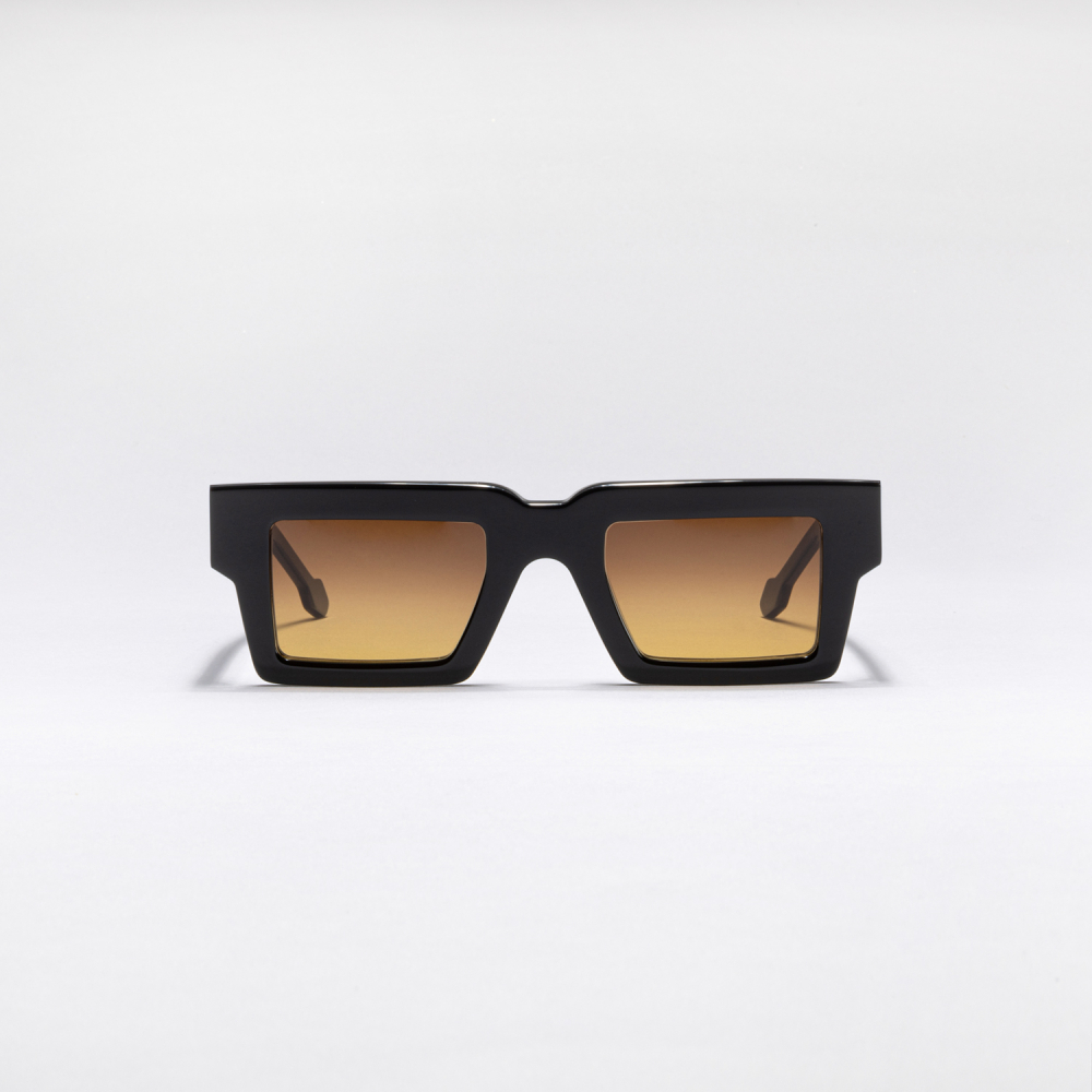 Occhiali da sole in acetato, modello BD "Bad Day", color nero con lenti arancioni.