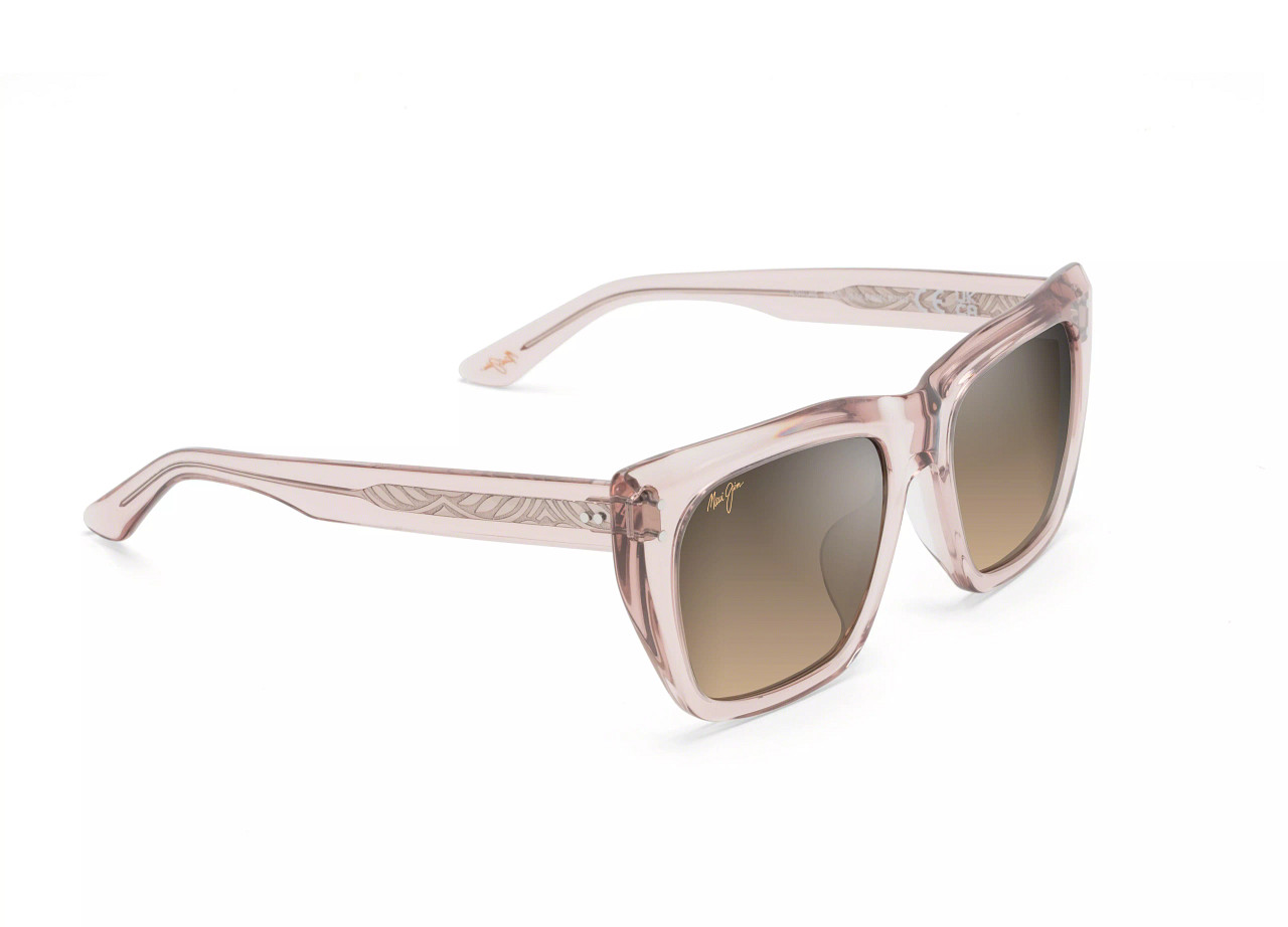 Occhiali da sole polarizzati fashion Aloha Lane di Maui Jim Sunglasses, dal fascino raffinato e la costruzione scultorea e angolare. Color rosa trasparente, con lenti Bronze polarizzate in vetro ultra sottile, porta la brillantezza nelle tue uscite quotidiane.
