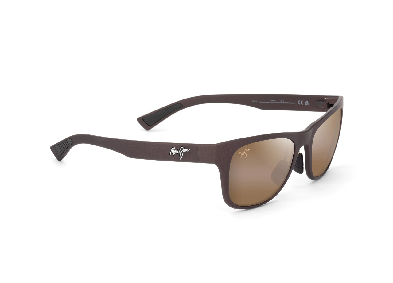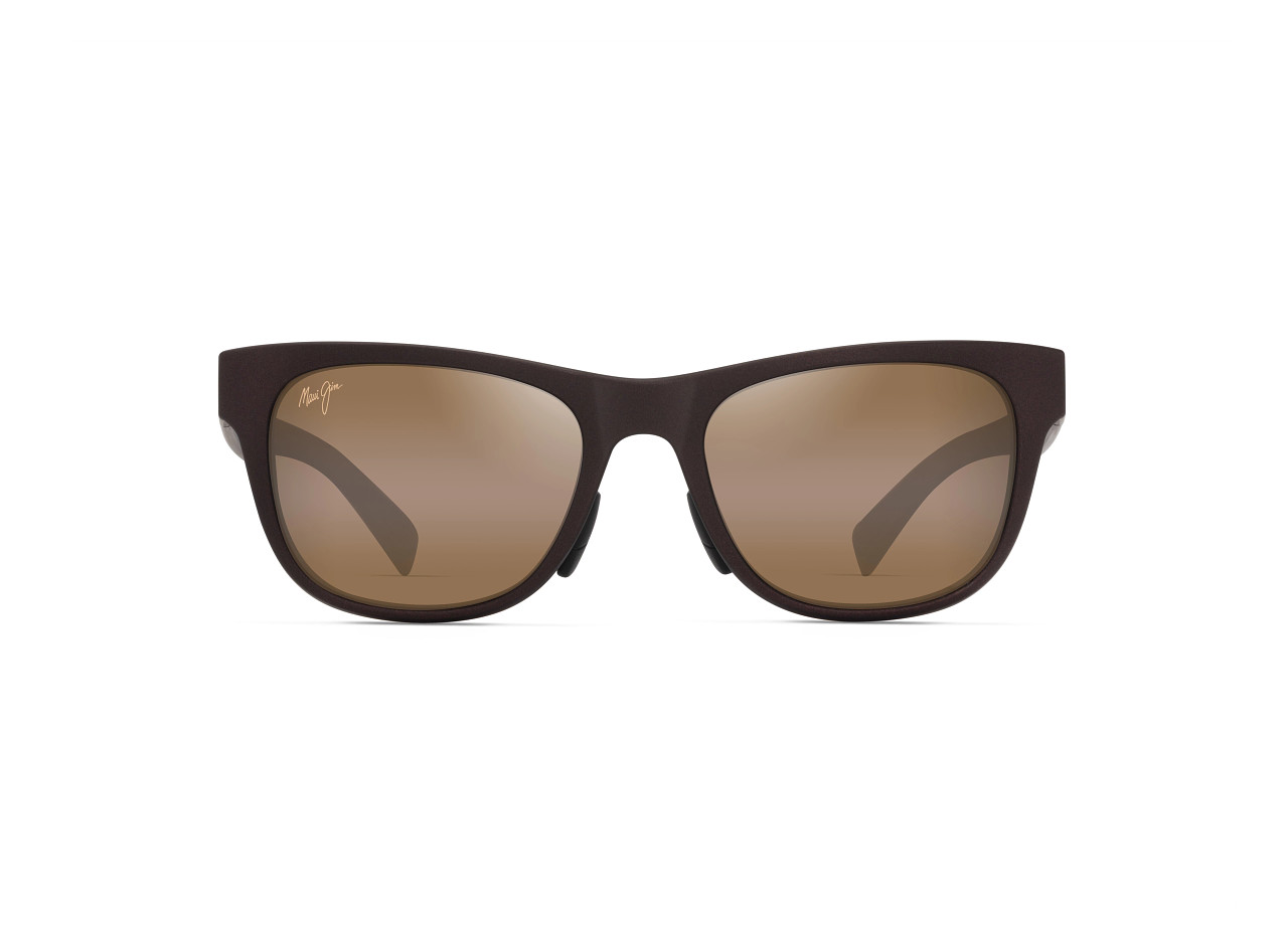 Occhiali da sole polarizzati a mascherina Kapeau di Maui Jim Sunglasses, un perfetto connubio di versatilità e protezione per le avventure quotidiane. Iconico motivo Wavy sui terminali, montatura in metallo marrone opaco, lenti in vetro ultra sottile Bronze.