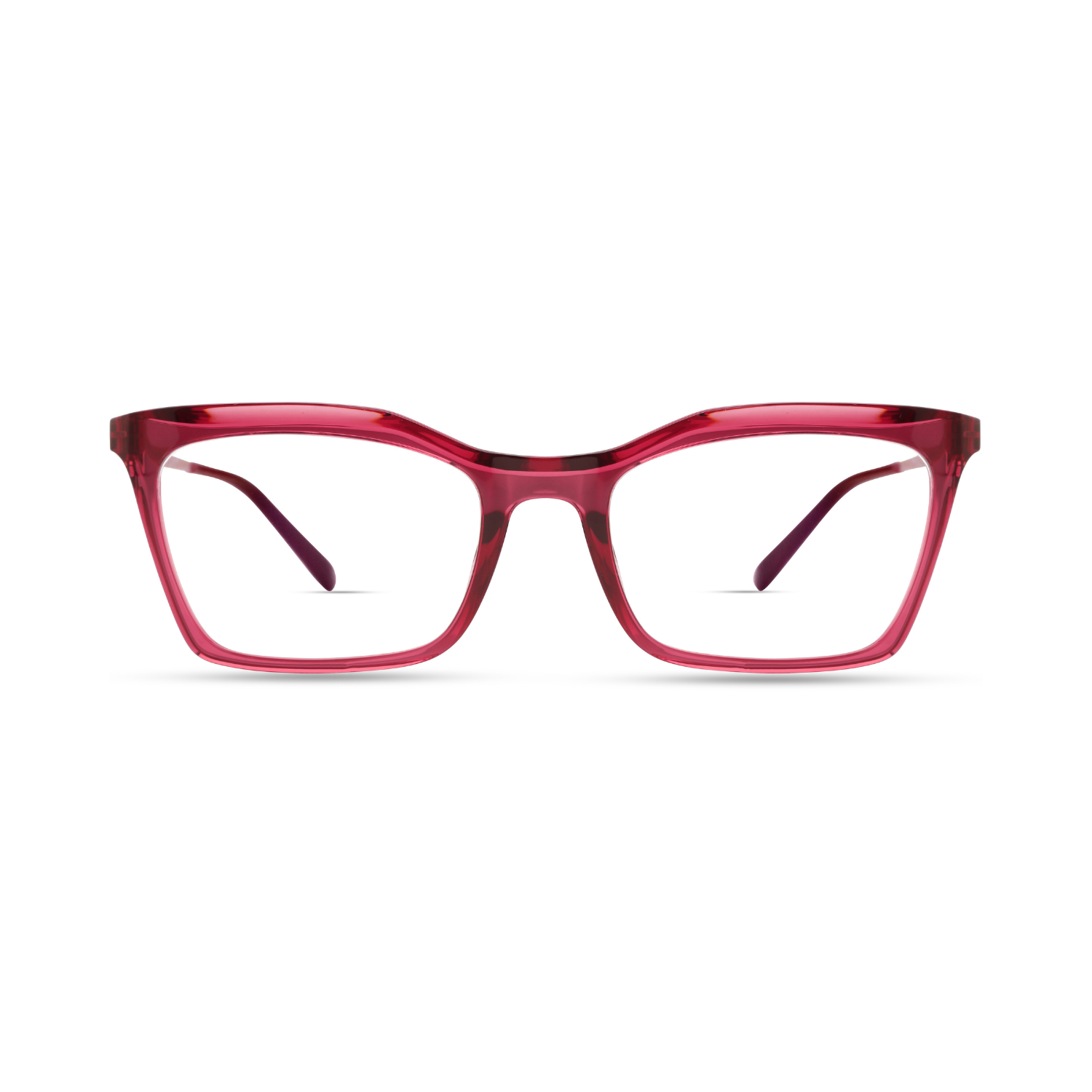Occhiali da vista Modo cat-eye squadrati, color lampone trasparente, creati combinando acetato e titanio.