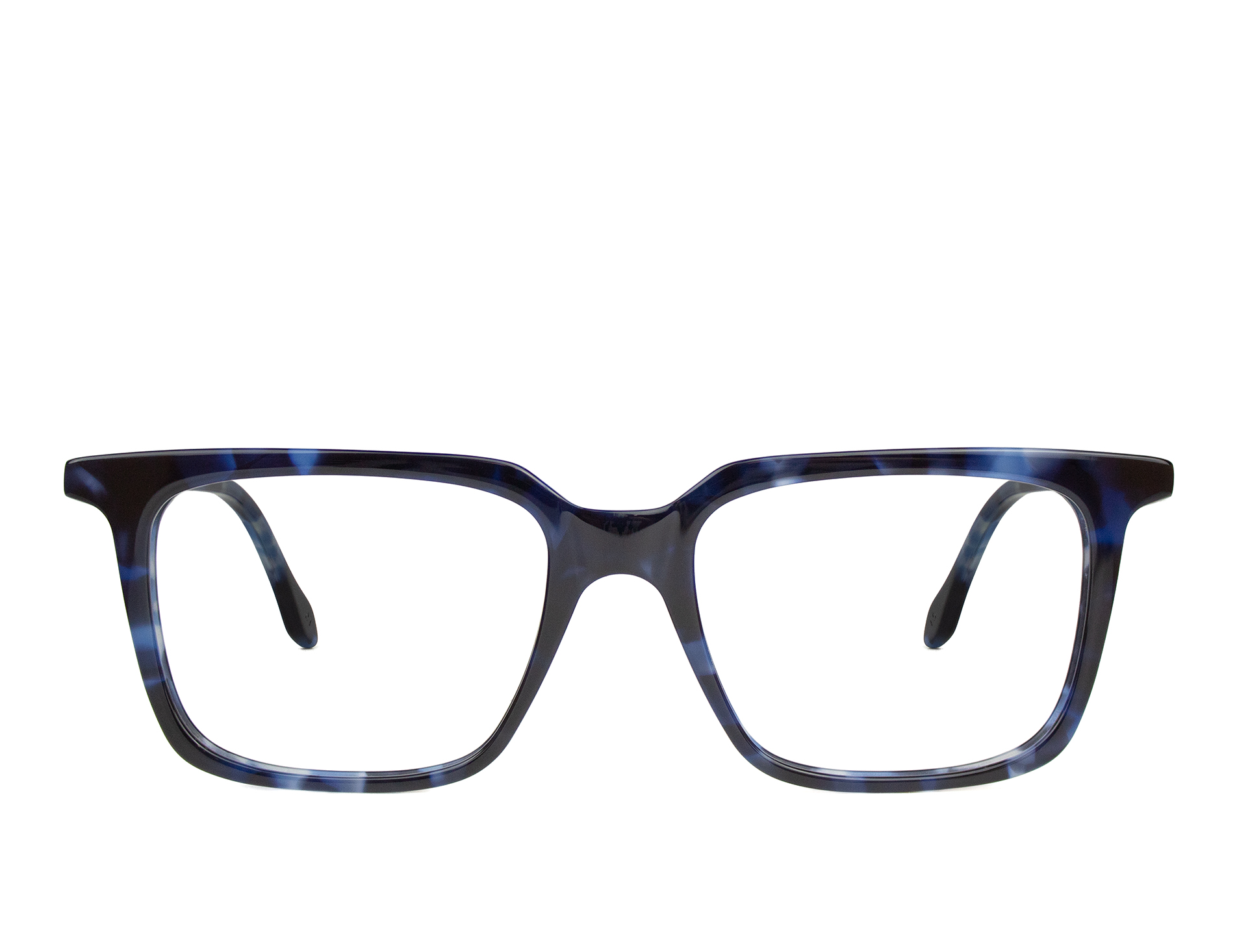 Occhiali da vista in acetato dalla forma classica, color havana blu e nero.