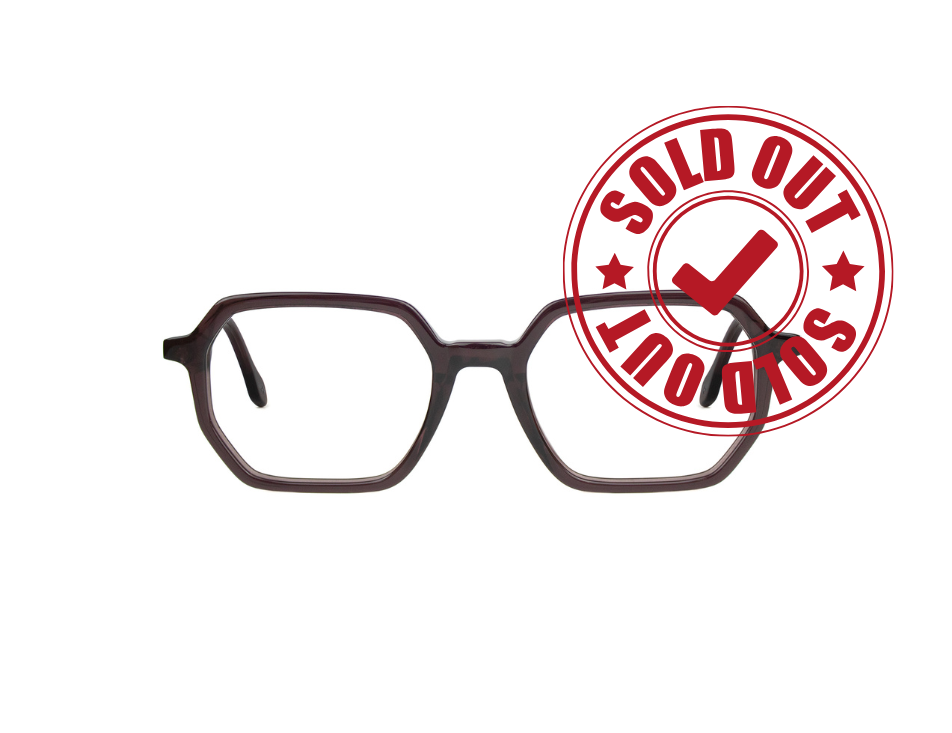 Occhiali da vista in acetato geometrico e deciso, color vino scuro trasparente.