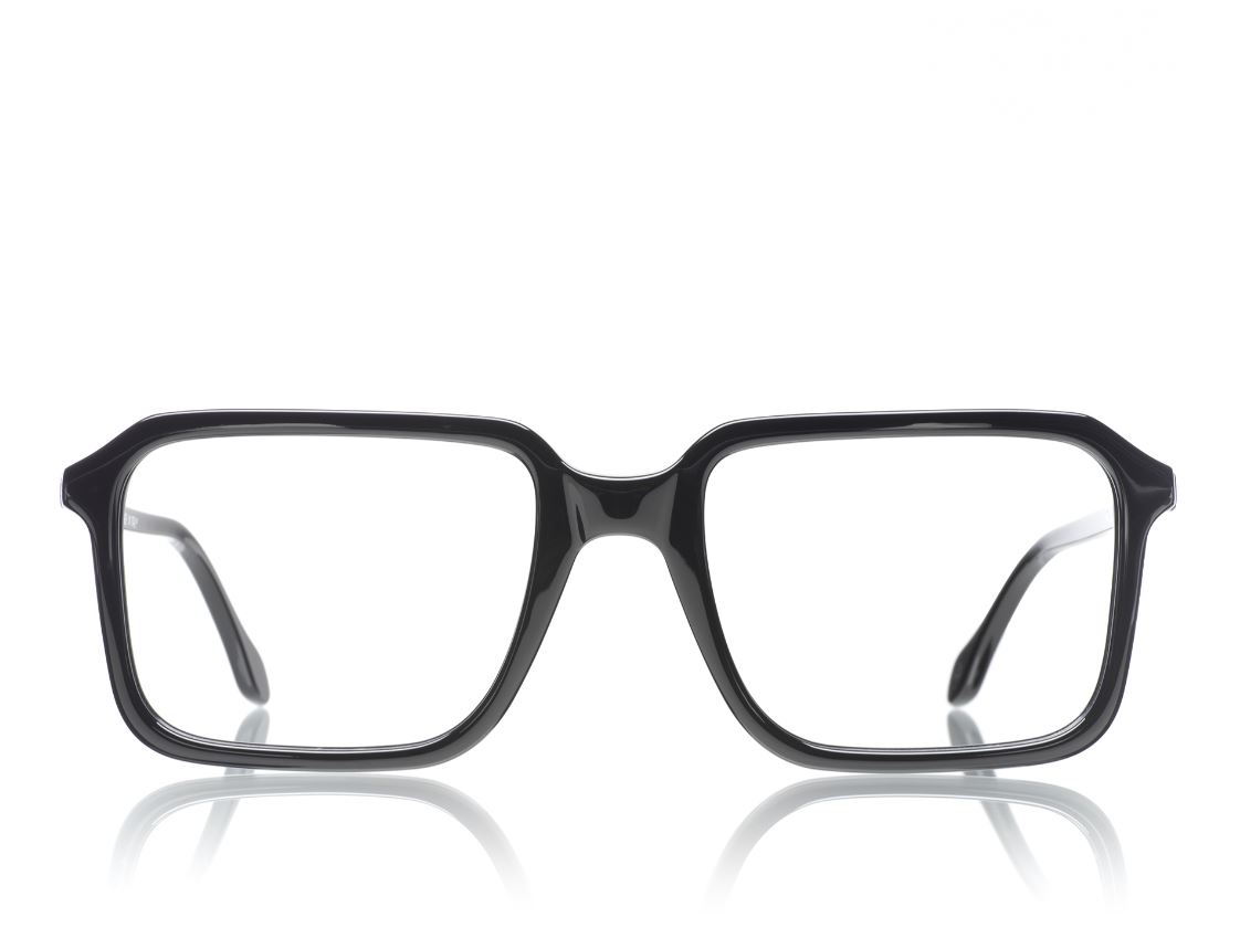 Occhiali da vista in acetato geometrico e deciso, color nero.
